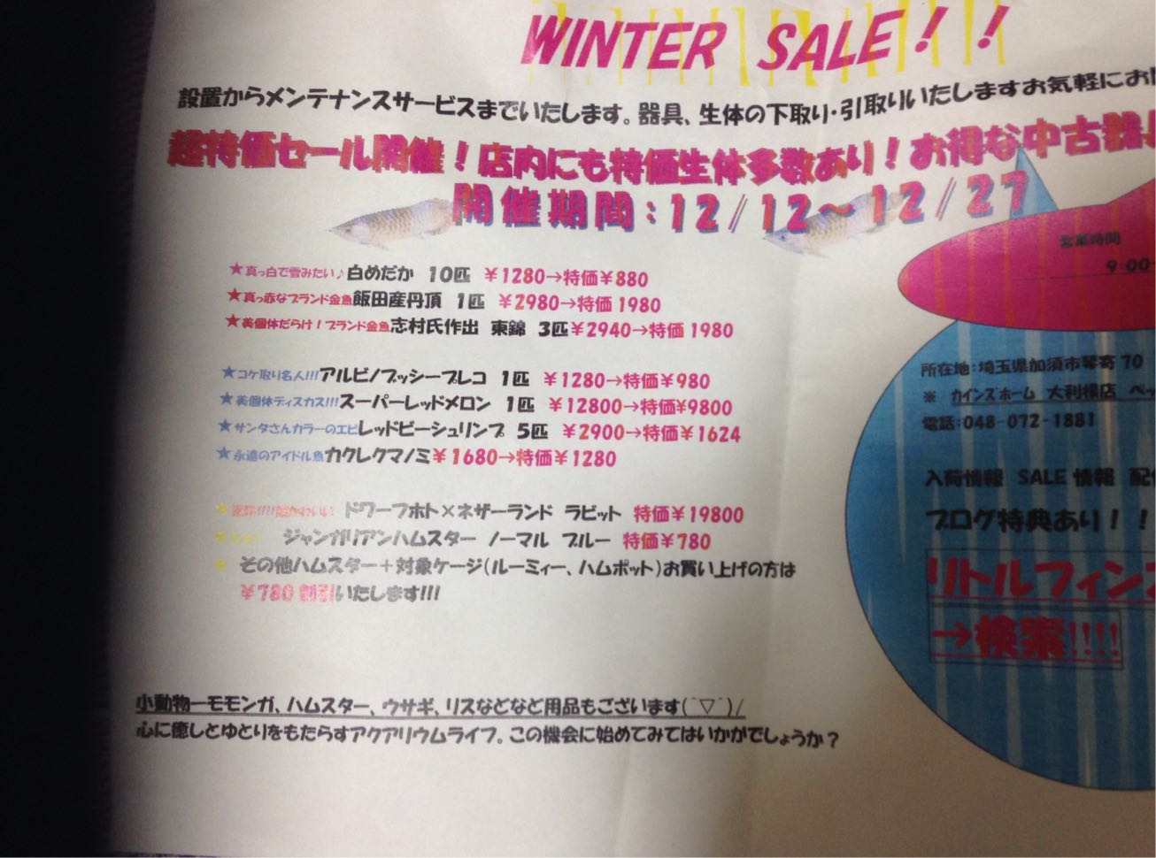 アクアリウムショップ「Little-Fins(リトルフィンズ)」の公式ブログです。 新入荷やセール情報はもちろんのこと、日々の出来事もアップしていきます。