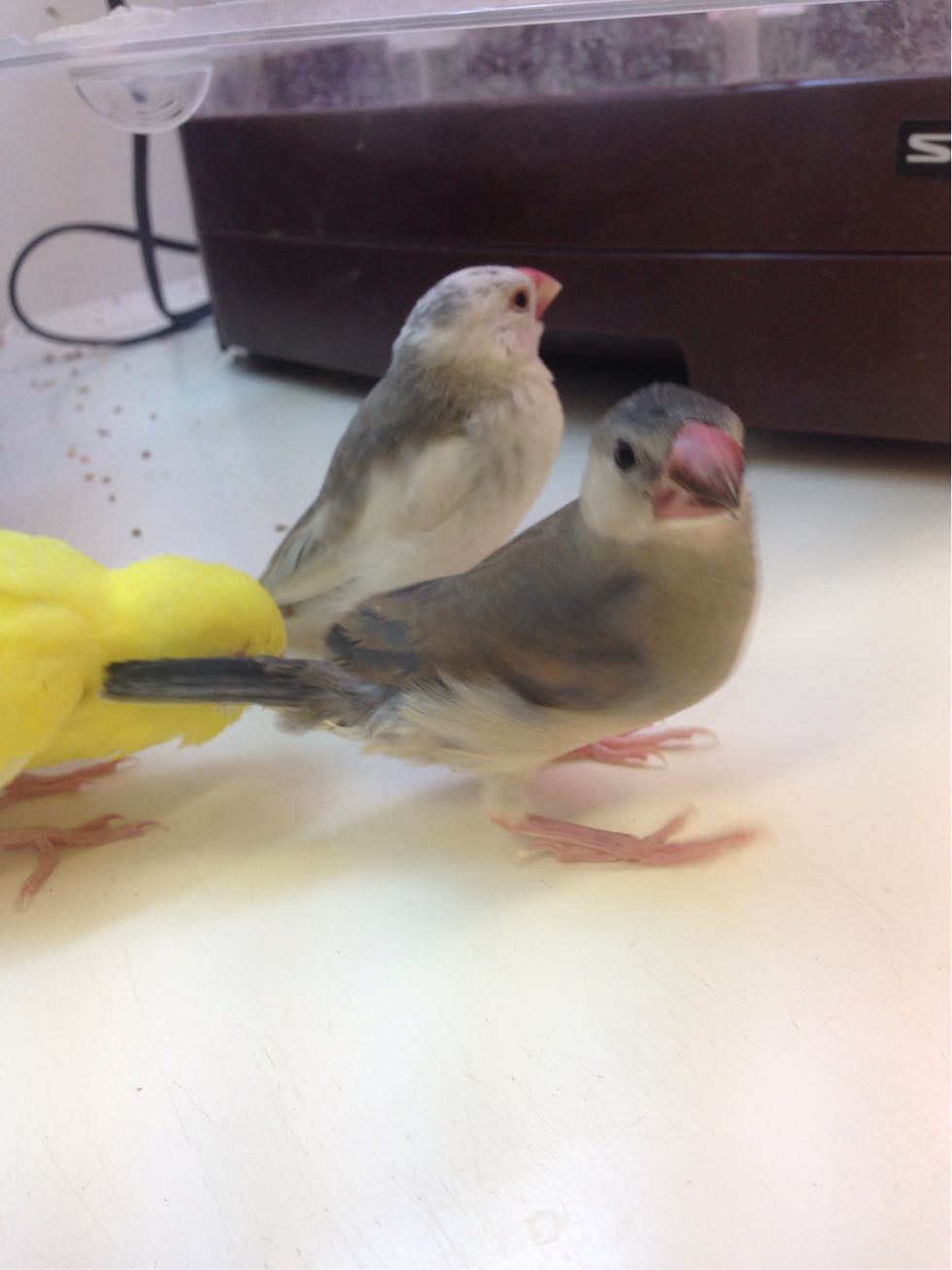 桜文鳥(手前)
