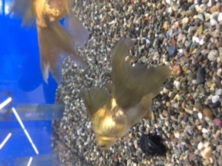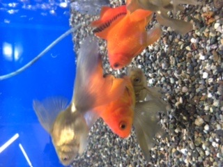 もみじ和金(・ω・)ノ目の周りがパンダみたいに黒いんです。ちなみにショートテールです