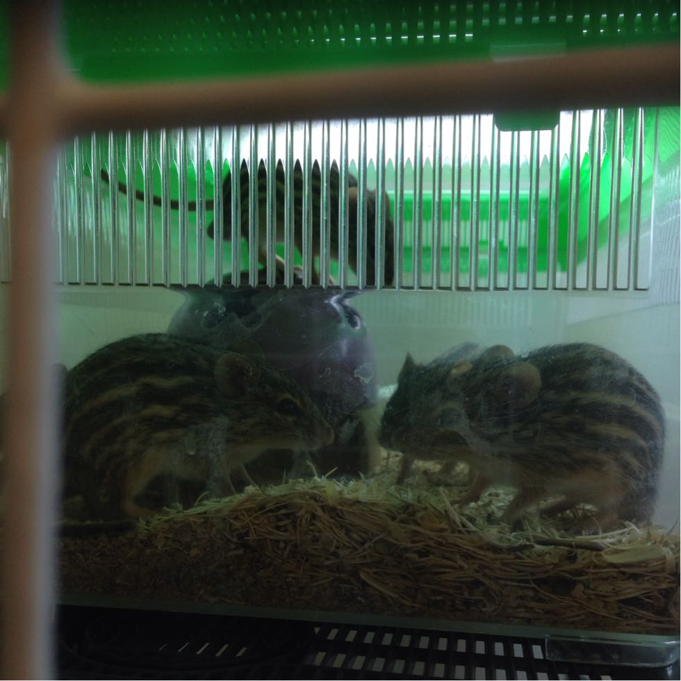 アフリカ原産で、草食に近い雑食動物で、当店では鳥餌や穀物類をあげています( ^ω^ )見ての通りシマシマ模様が可愛く、シマリスにも似た風貌