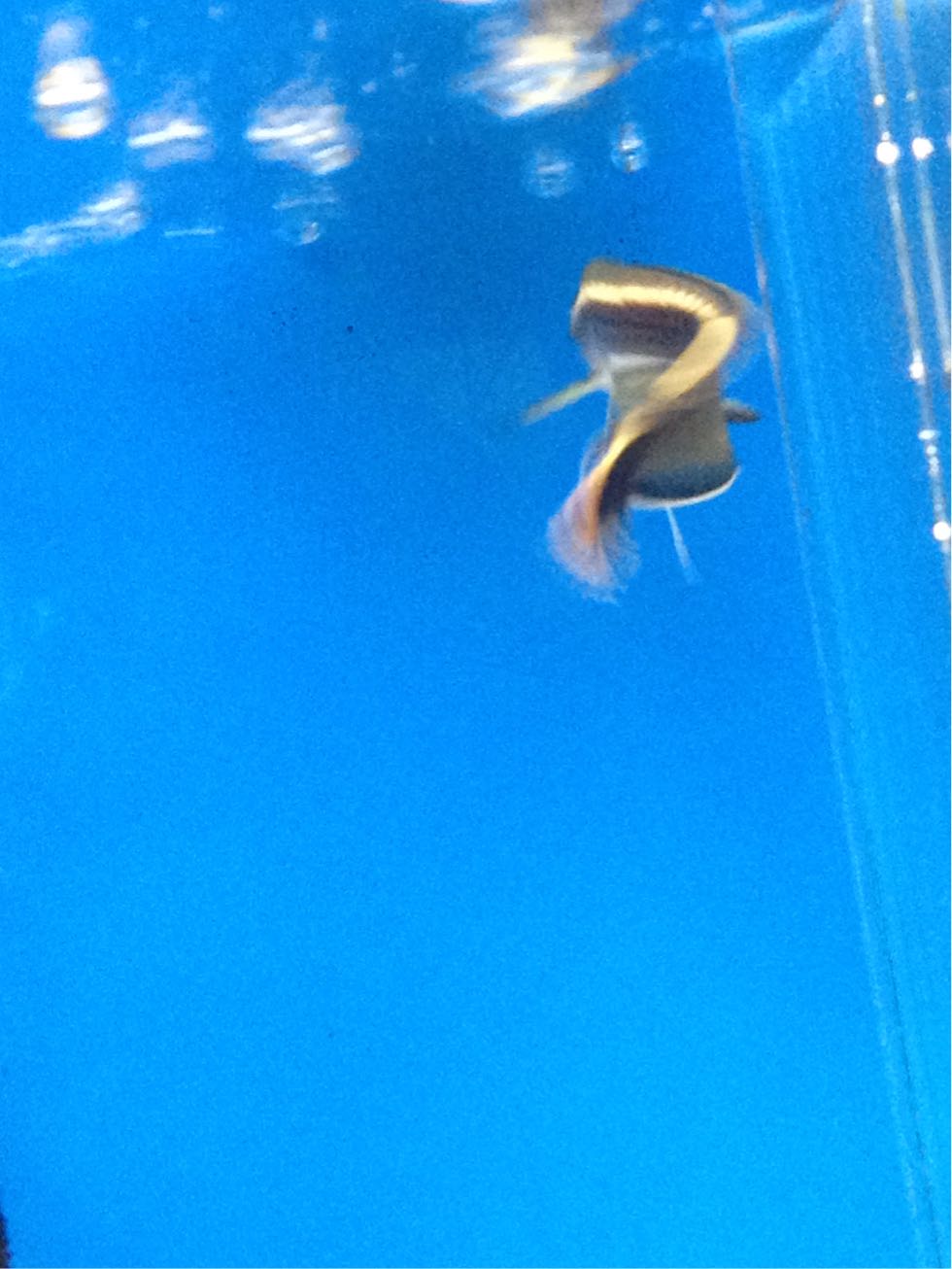 今は黒に黄色のストライプですが、成長すると銀色ボディーで背びれと尻びれ、尾びれが青黒い色になり、黄白色の縁取りになります(・ω・)そりゃもうカッチョいい!